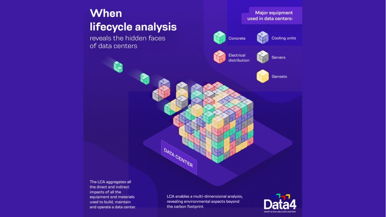 Data4, operatore nel mercato europeo dei data center, e APL Data Center, principale società francese di progettazione e ingegneria di data center, hanno presentato il primo white paper al mondo dedicato alla Valutazione del Ciclo di Vita ambientale (Environmental Life Cycle Assessment) di un data center. Con la pubblicazione del profilo ambientale completo di uno dei suoi data center da 5 MW, basato su una metodologia scientifica di riferimento, Data4 compie un passo decisivo verso una maggiore trasparenza e un futuro digitale più sostenibile, invitando l’intero ecosistema ad adottare criteri di misurazione dell’impatto più rigorosi.